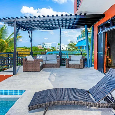 Castillo Hunab Ku San Pedro villa ligt op 2 km afstand van Archeologische Maya-locatie Marco Gonzalez en nodigt gasten uit om te ontspannen op een terras.